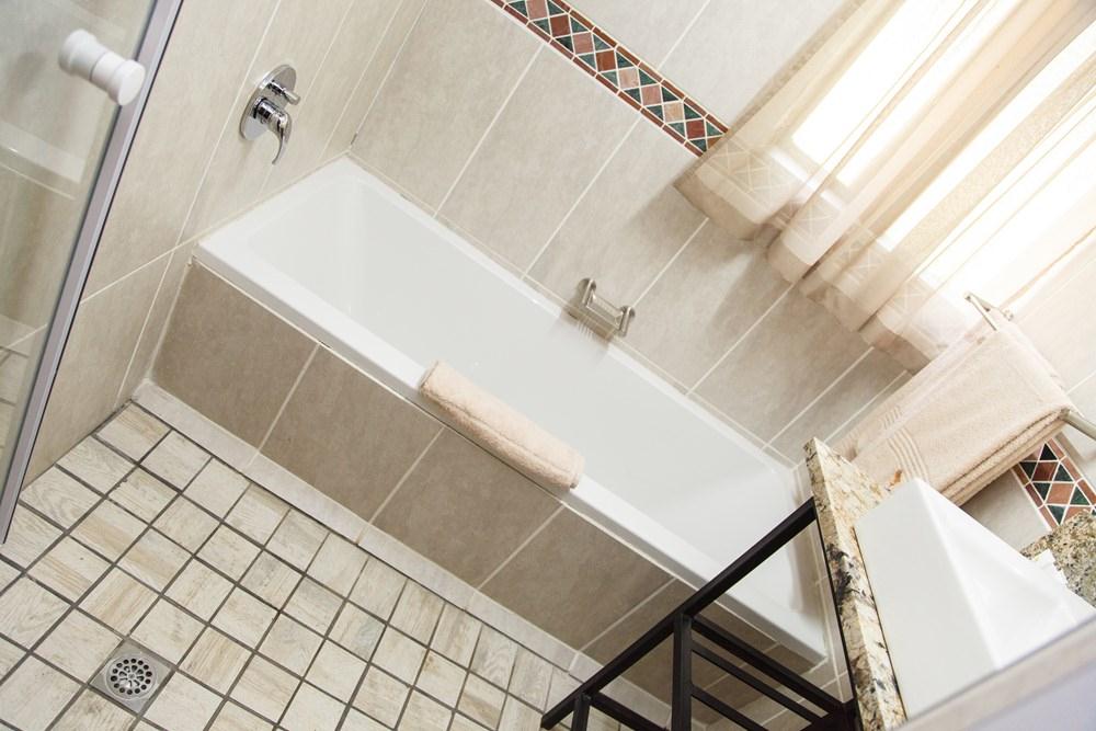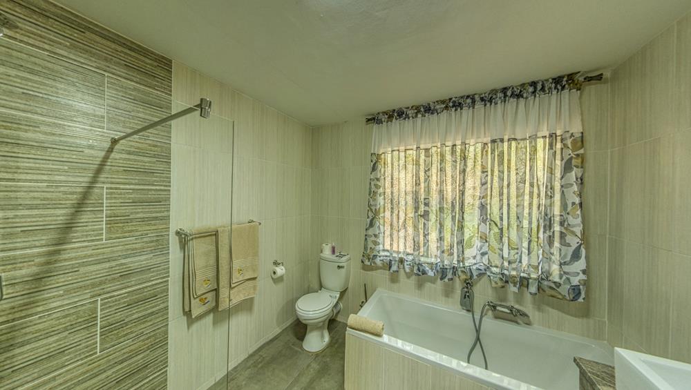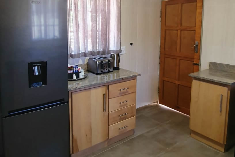 4 bedroom/8 Guest House: Main Room: 1 x double bed with en-suite, bathroom with a bath, shower, basin and toilet & Dressing Room. 2nd Bedroom with a double bed. 3rd & 4th Rooms 2 x single beds in each room. Bathroom with bath and shower. Separate toilet. Kitchen fully equipped with basic crockery and cutlery (for 8 people), cooking utensils, stove, oven, fridge and microwave. Lounge with a TV (16 selected DSTV Channels) Air-conditioner and Braai area. Max 8 people.